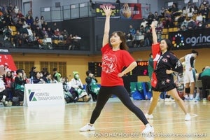 第1Qと第2Qのインターバルにて、Raily'sがバズーカを持ってコートに登場!!