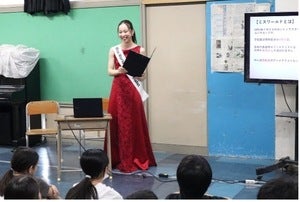 「夢に向かう力」を子どもたちへ 東京八王子ビートレインズの山本楓己選手とミス・ワールド・ジャパン2024ファイナリスト フォトジェニック賞 塚本結氏が元八王子東小学校で出張授業