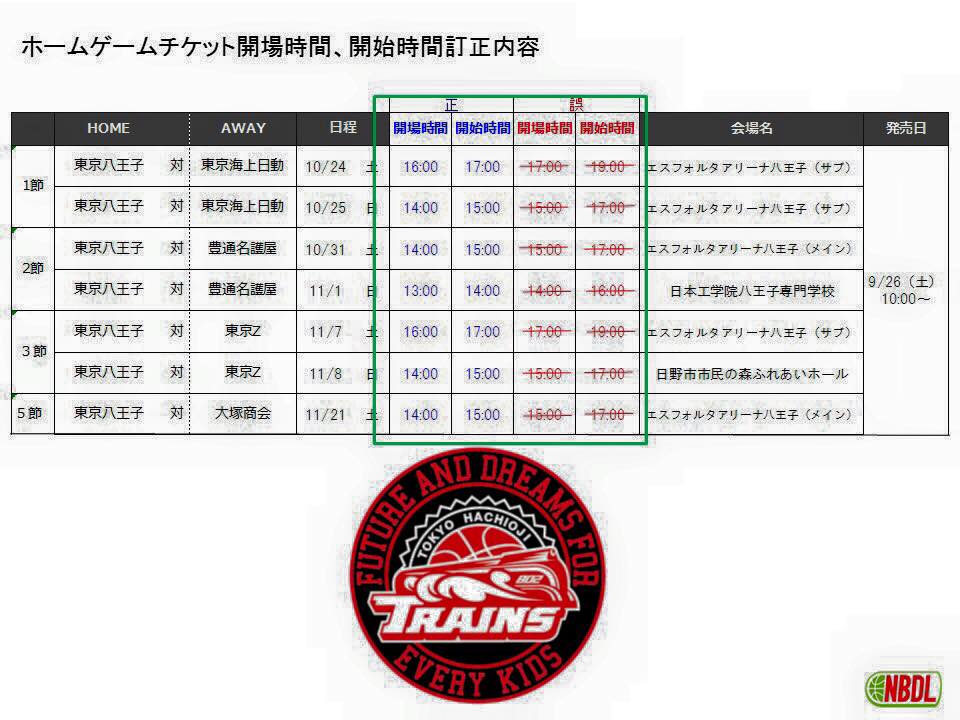 【ホームゲームチケット開場時間、試合開始時間訂正のご連絡とお詫び】