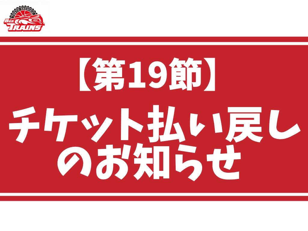 ※重要※ 【第19節】 5月7日(金)・8日(土) 八王子vs金沢 チケット払い戻しのお知らせ