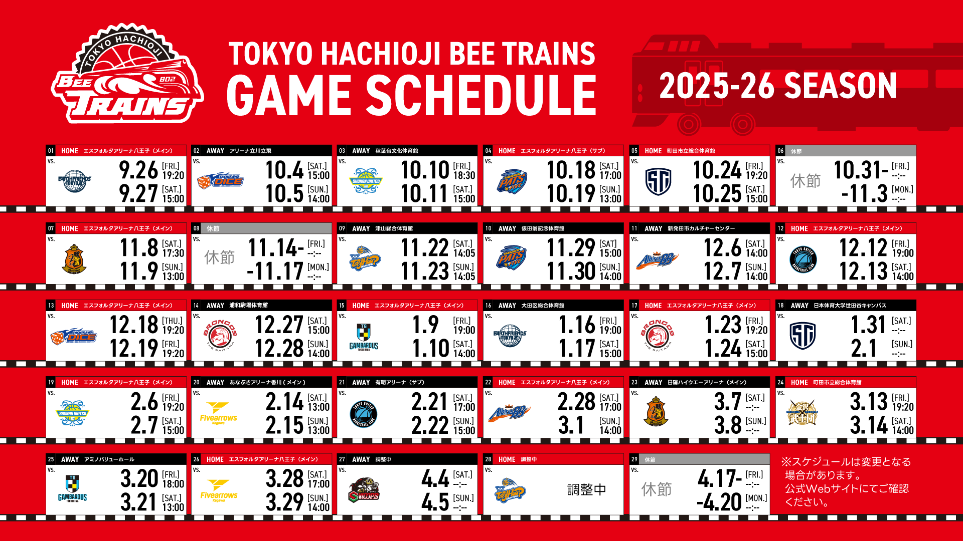 B3リーグ 2025-26シーズン 試合開始時間決定のお知らせ