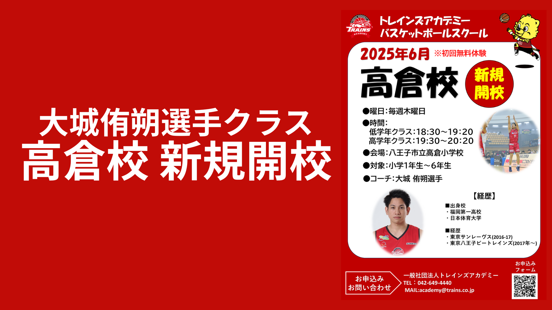 【トレインズアカデミー】大城侑朔選手クラス「高倉校」新規開校のお知らせ