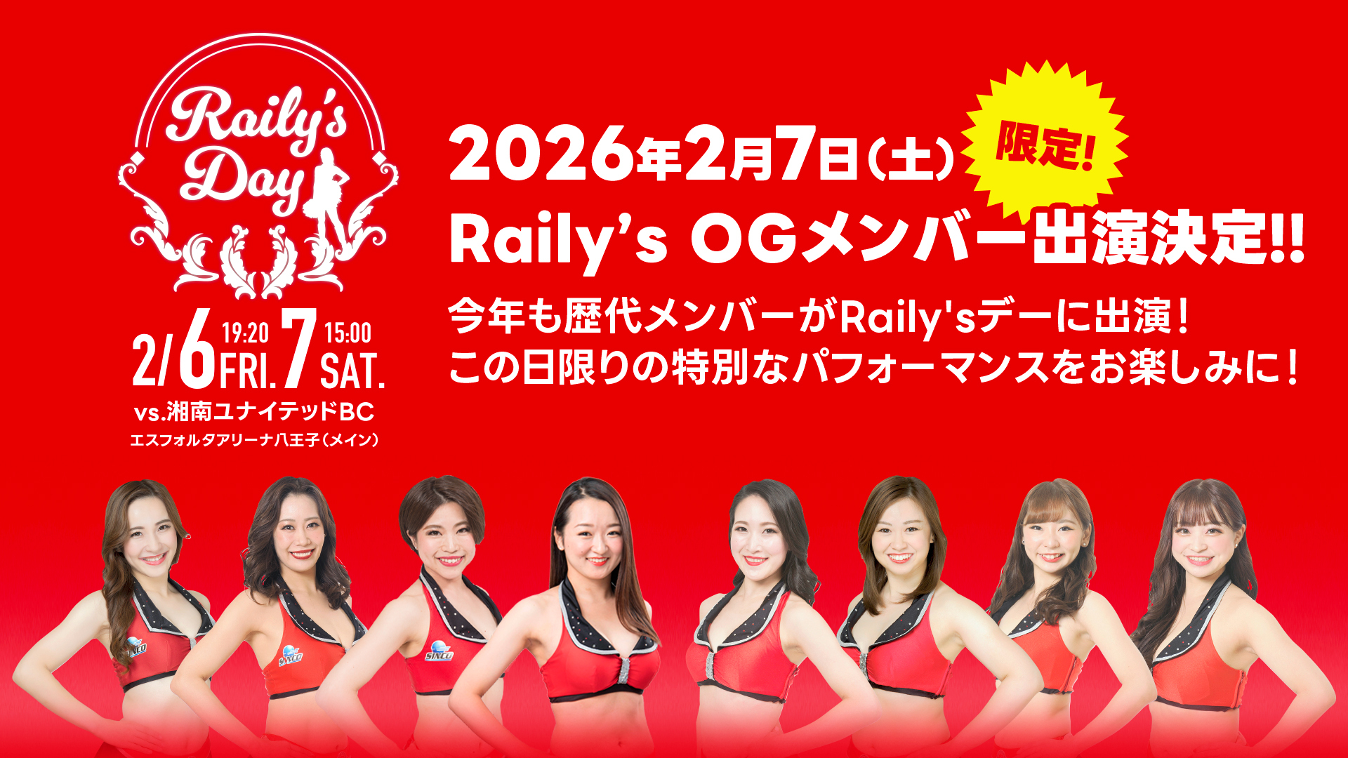 この度、2026年2月6日(金)・2月7日(土)第19節の湘南ユナイテッドBC戦にて開催する、『Raily'sデー』のゲストを発表いたします!!