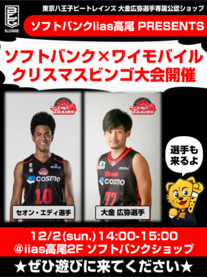 下記の日程において、ソフトバンクイーアス高尾にてクリスマスビンゴ大会に選手が参加いたします!