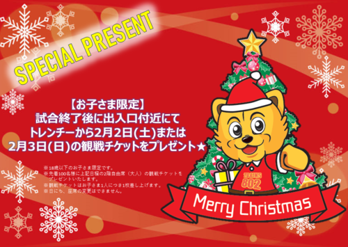 12月22日(土)、23日(日)の試合終了後、出入口付近でトレンチーサンタからプレゼントが!!