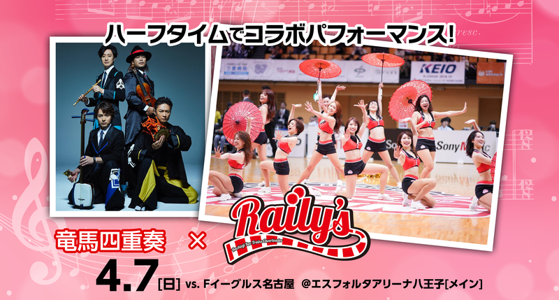 4月7日(日)のハーフタイムでは竜馬四重奏の生演奏にてRaily'sがパフォーマンスをいたします!