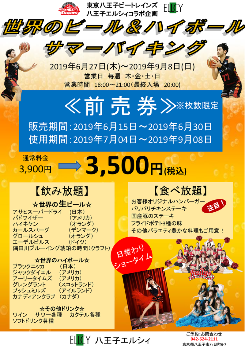 八王子エルシィで開催される「世界のビール&ハイボール サマーバイキング」と八王子ビートレインズのコラボ企画!