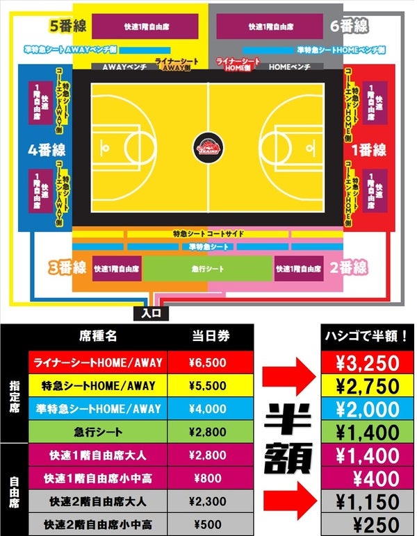 ・サンロッカーズ渋谷またはアースフレンズ東京Zの試合ではチケット等の割引はございませんので、ご注意ください。