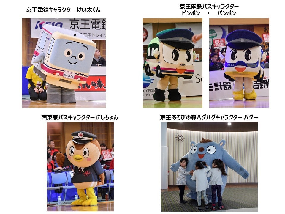 【京王グループキャラクター大集合】京王電鉄キャラクター「けい太くん」、西東京バスキャラクター「にしちゅん」、京王電鉄バスキャラクター「ピンポン・パンポン」、京王あそびの森ハグハグのキャラクター「ハグー」が遊びにきてくれます!