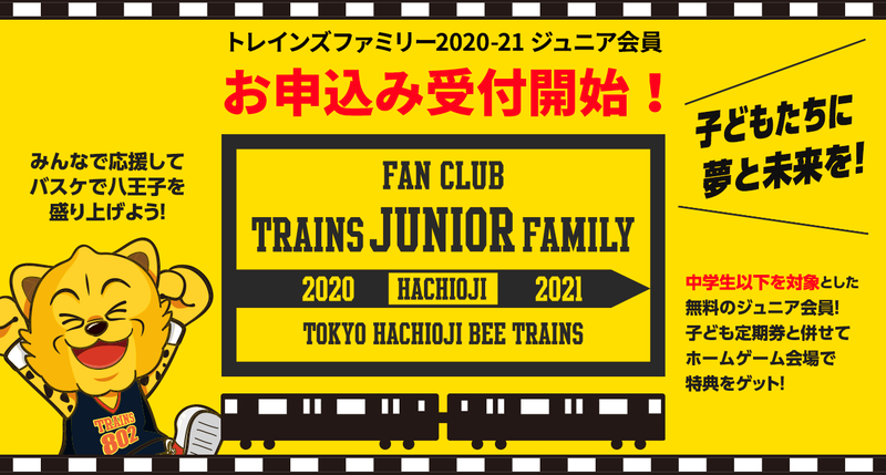 中学生以下の子どもが対象のファンクラブ、TRAINS Jr. FAMILY 2020-21シーズンの受付が9月5日(土)10:00より開始いたします!