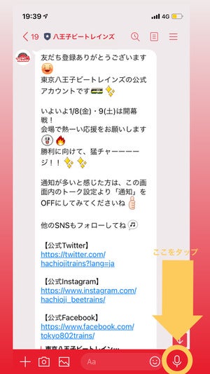 (1)東京八王子ビートレインズ公式LINE登録