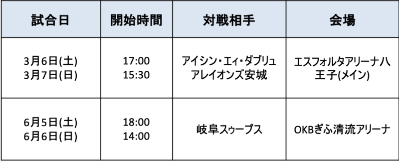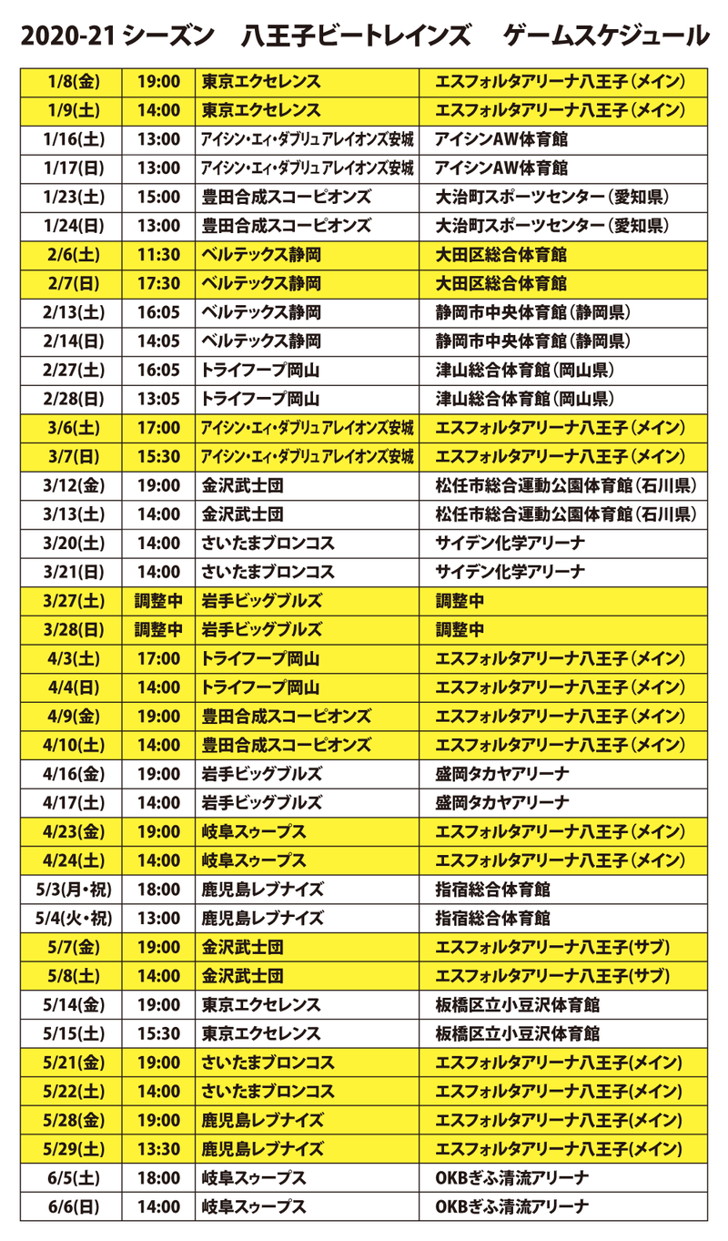 2020-21シーズン ホームゲームスケジュール -更新-