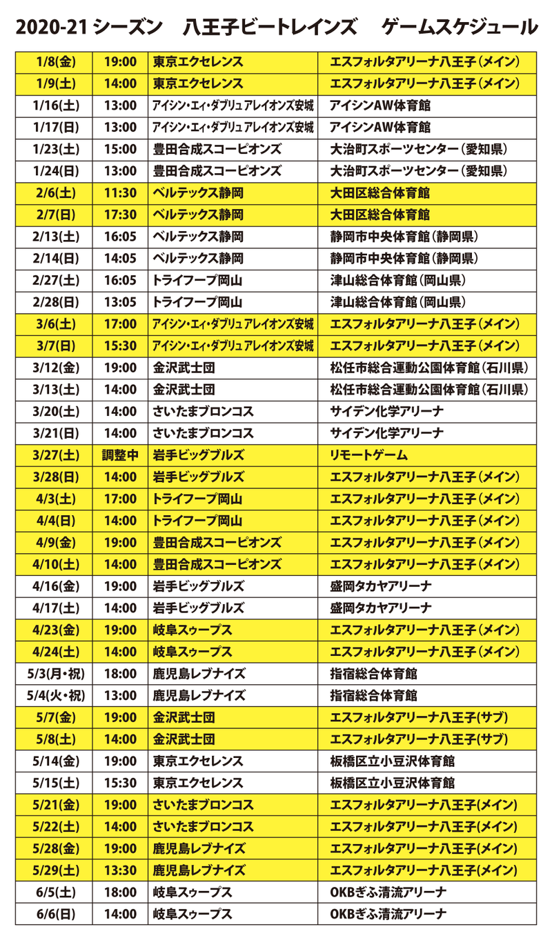 2020-21シーズン ホームゲームスケジュール -更新-