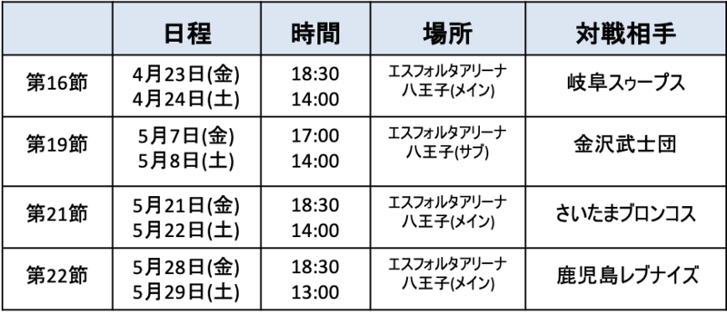 この度、東京八王子ビートレインズでは、八王子市が「まん延防止等重点措置」の対象地域となっており、新規感染者数が増加傾向にあることから、第22節vs鹿児島レブナイズの試合開始時間を変更することになりましたので、お知らせいたします。