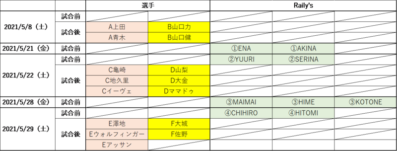 ※当初、ツーショット撮影会を予定しておりましたが、運営上の都合により複数名の選手もしくはRaily'sメンバーとの撮影に変更させていただきます。予めご了承ください。※