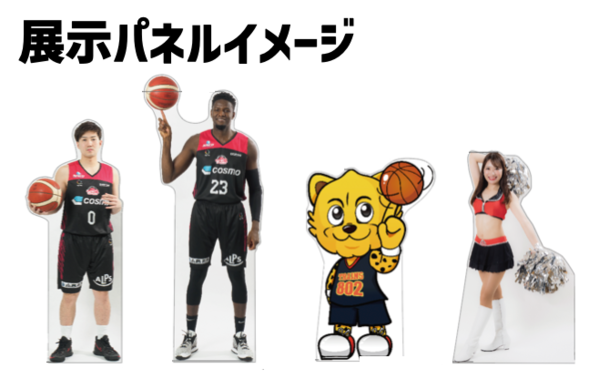 ・選手等身大パネル(上田雅也選手、ジュフ・バンバ選手)・チアリーダーRaily’s 等身大パネル(ENA)