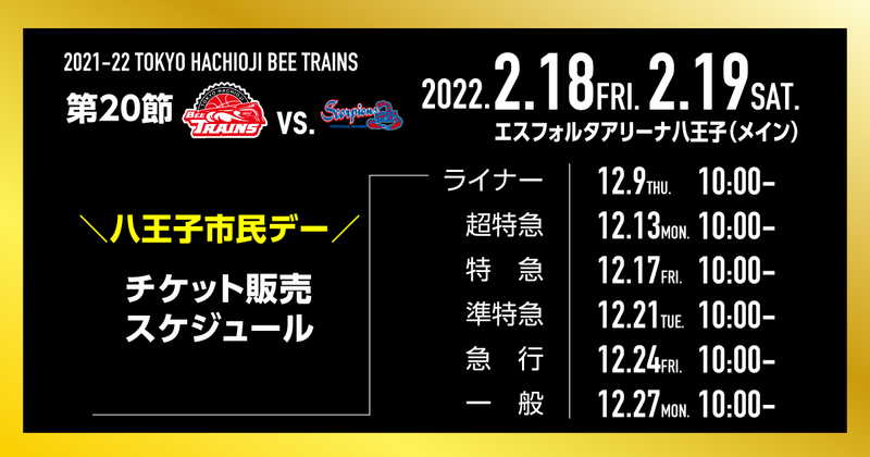 2月18日(金)・19日(土)vs.豊田合成スコーピオンズ戦は、『八王子市民デー』!!!!!八王子・八王子ビートレインズに関わる全ての皆さまに日頃の感謝の気持ちを込めて、特別価格にてご案内します!!!