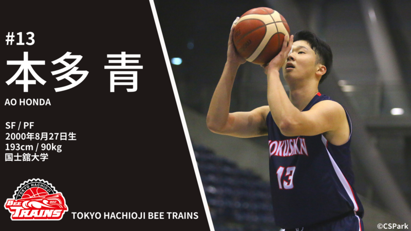 この度、特別指定選手として国士舘大学の本多青選手に加入していただくことになりました。国士舘大学様のご理解に感謝申し上げます。
