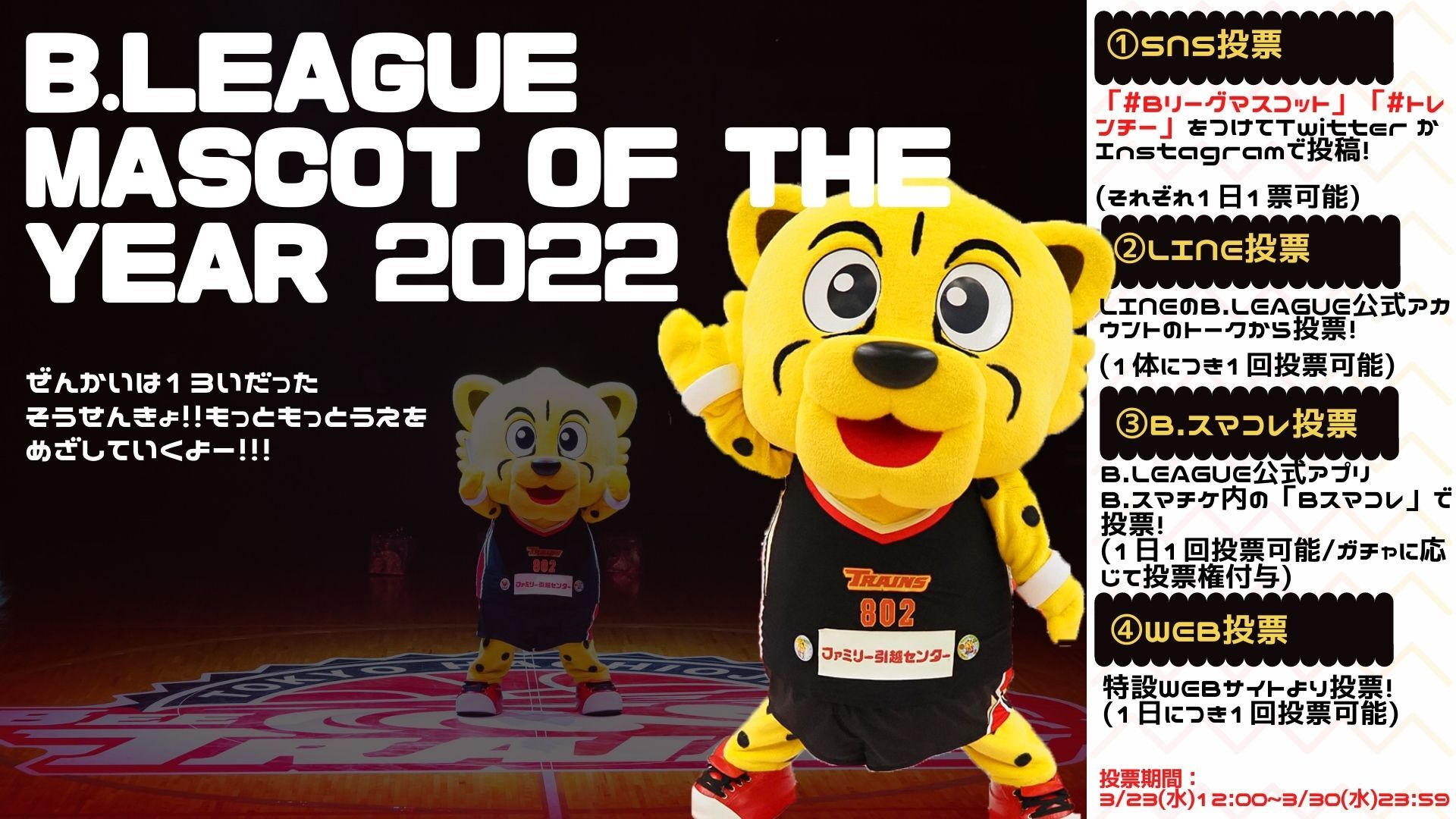 この度、B.LEAGUEが主催する『B.LEAGUE MASCOT OF THE YEAR 2021-22 』にトレンチーがエントリーすることとなりましたのでお知らせいたします!!
