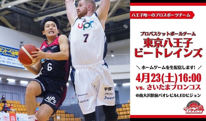 この度、八王子ビートレインズでは4/23(土)16:00~のさいたまブロンコス戦を南大沢駅前パオレビル外観の大型ビジョンにて生放映することとなりましたのでお知らせいたします。