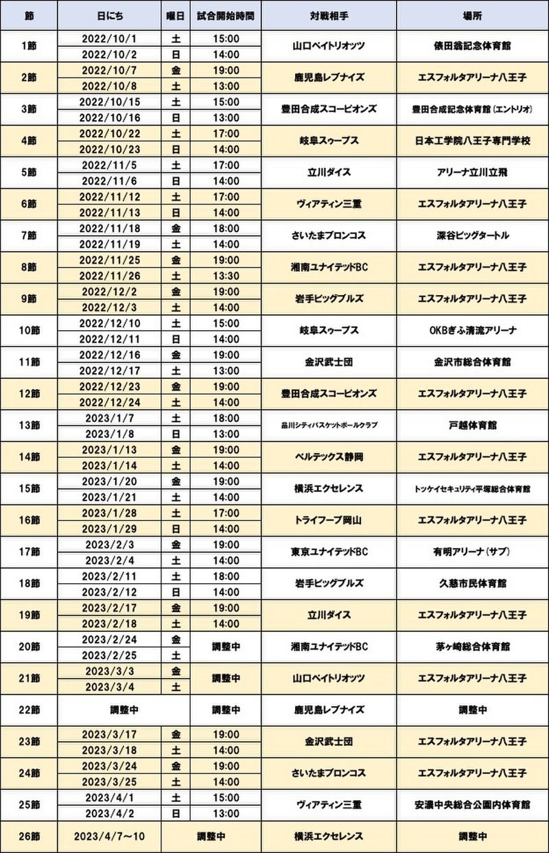 B3リーグ 2022-23シーズンのゲームスケジュールの試合開始時間が決定しましたので、お知らせいたします。