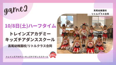 10/8(土)ハーフタイムには、トレインズアカデミーキッズチアダンススクールの「高尾幼稚園校/リトルクラス合同」生によるパフォーマンス!✨ 一生懸命練習したことを、心を込めてパフォーマンスします!