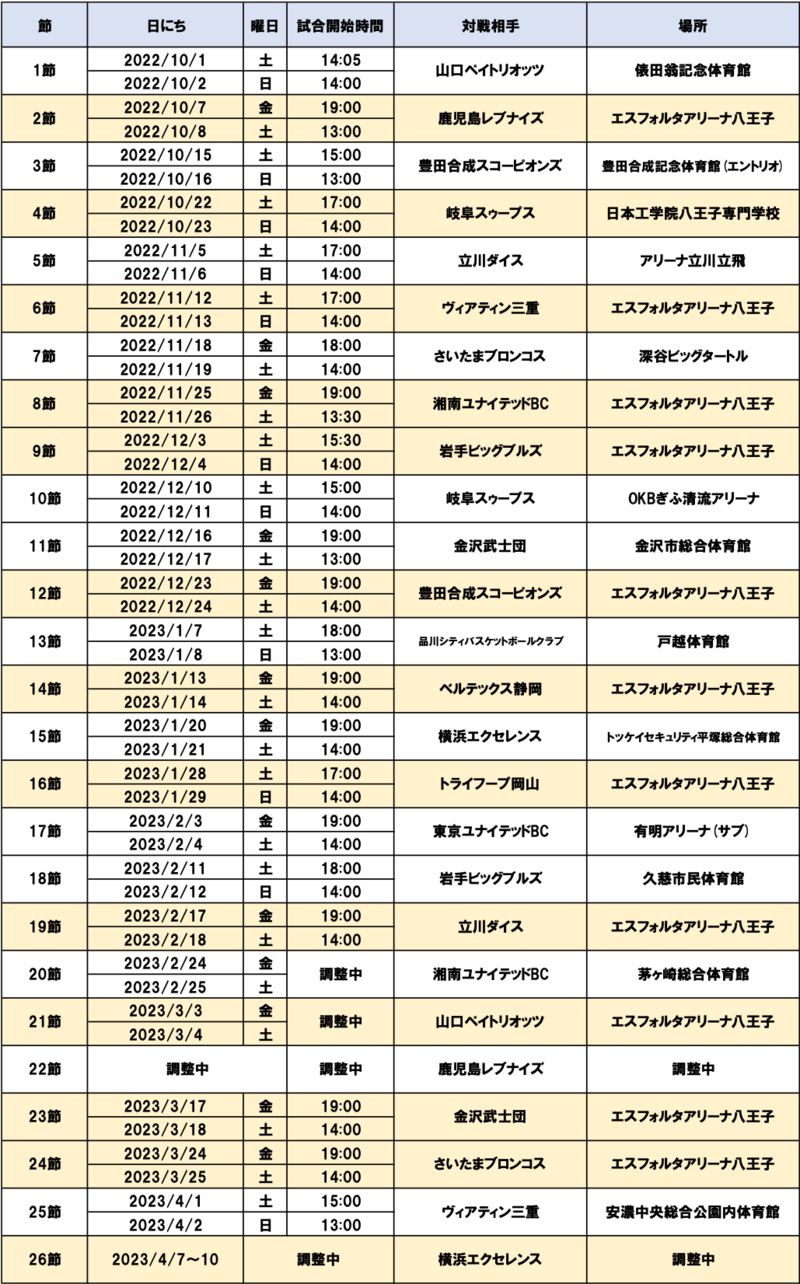 2022-23シーズン第9節 vs.岩手ビッグブルズのゲームスケジュールが変更となりましたので、お知らせいたします。