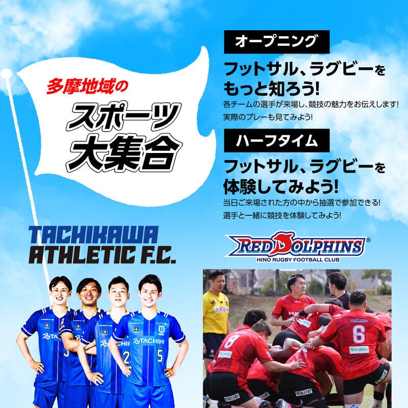 バスケだけでなく、他の競技でも多摩地域を盛り上げよう!当日は体験できるコーナーもありますのでお楽しみに!