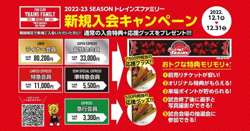 12月中に新規ご入会いただいた方には!トレインズ応援グッズをプレゼント🎁