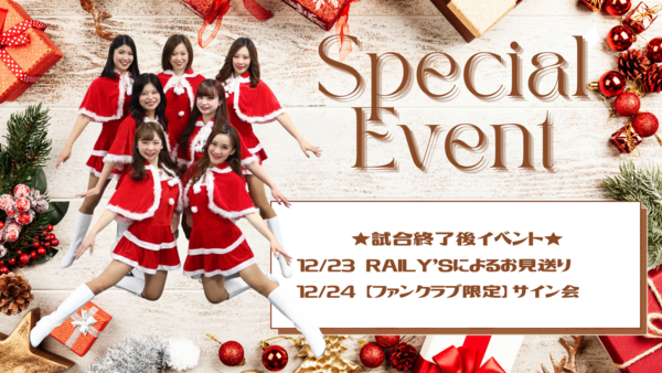 12月23日(金)の試合終了後、ご来場いただいた皆さまに感謝の気持ちを込めてRaily’sがお見送りを行います。