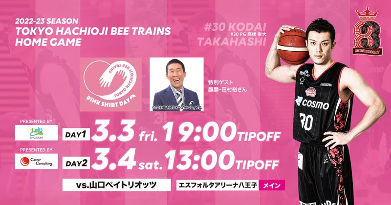 2023年3月3日(金) 19:00試合開始(一般開場16:30)