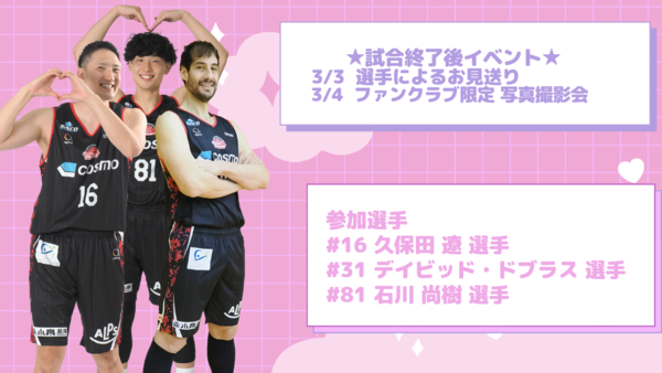 3月3日(金)の試合終了後、ご来場いただいた皆さまに感謝の気持ちを込めて選手がお見送りを行います。