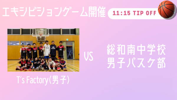 バスケスキルスクールを行うTs factory(男子)と茨城県古河市立総和南中学校男子バスケ部とのエキシビションマッチを行います。