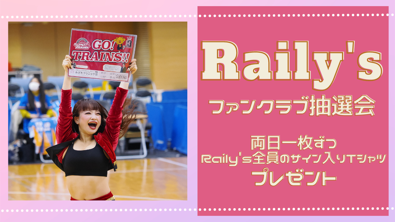 第2Qオフィシャルタイムアウトに行われるファンクラブ抽選会で両日1枚ずつRaily's7名全員のサイン入りTシャツをプレゼント!!