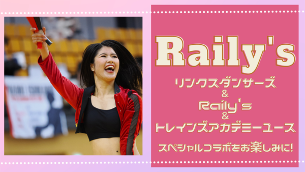 3月3日(金)のハーフタイムにてBリーグでのチアリーダー経験を持つ3人のチアリーダーリンクスダンサーズ&Raily's&トレインズアカデミーチアユースのメンバーとコラボパフォーマンスを行います!