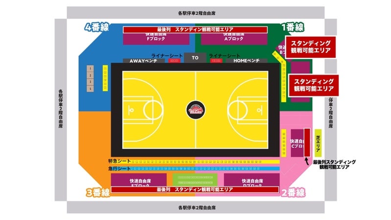 第24節さいたまブロンコス戦より、1階快速自由席Bブロックが「つり革ゾーン」としてスタンディング観戦が可能なエリアになります。