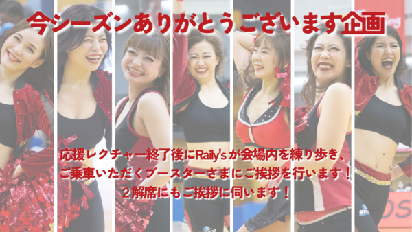 4月7日(金)の試合終了後、ご乗車いただいた皆さまに感謝の気持ちを込めてRaily'sが1階席ロビーでお見送りを行います!