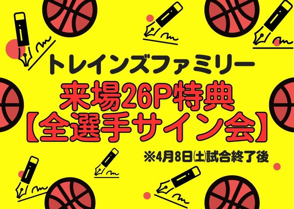 ・全員集合写真撮影の後、ファンクラブ来場ポイント特典(26ポイント) 「全選手サイン会」を実施いたします。