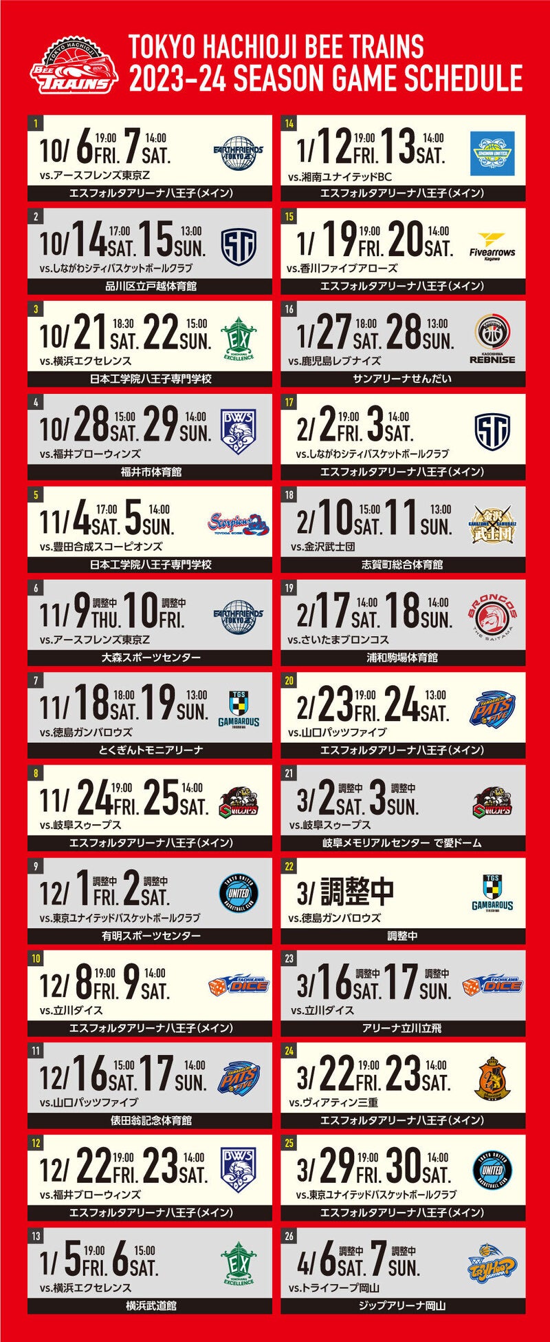 ※日程、時間などスケジュールは変更する可能性があります。変更の場合には、八王子ビートレインズ公式ウェブサイトよりお知らせいたします