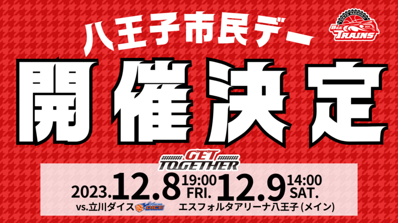 12月8日(金)・9日(土)vs.立川ダイス戦は、今年もやります『八王子市民デー』!!!!!!!!