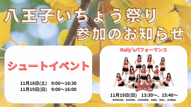 ◆日時 11月19日(日)13:30~ Raily'sによるステージパフォーマンス(C会場:陵南公園本園 本部ステージ)