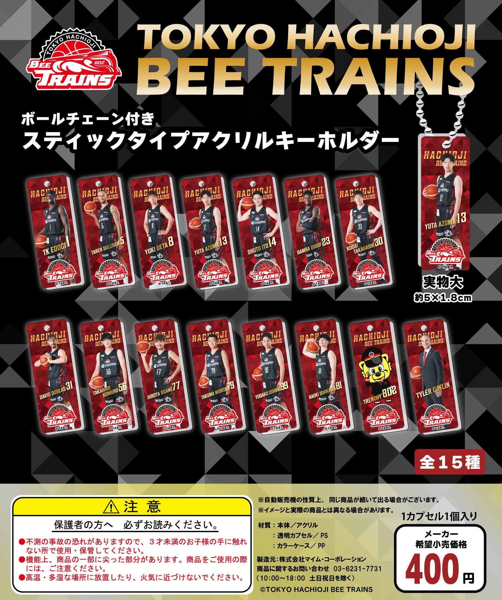 全選手、HC、トレンチーの「スティックタイプアクリルキーホルダー」が新登場!