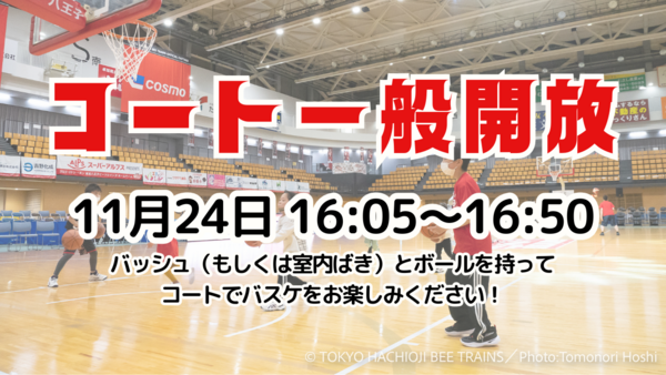 11月24日(金)16:05~16:50に選手が試合を行なっているコートを一般開放いたします!