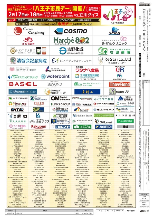 八王子・そして東京八王子ビートレインズに関わる全ての皆様に、日頃の感謝の気持ちを込めて、『八王子市民デー』と題してホームゲームを開催いたします!