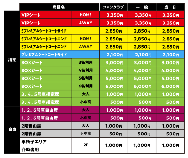 ※チケット販売状況により、1号車自由席コートサイドとコートエンドの間の席を設置しない場合がありますので、あらかじめご了承ください。チケット