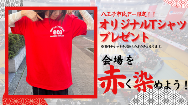 有料チケットをお持ちの方には八王子市民デー限定Tシャツを先着2,500名様にプレゼント!!