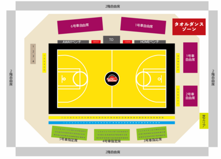 B3リーグ2023-24シーズン第15節香川ファイブアローズ戦より、「ローリングタオルダンスゾーン」を下記エリアに設置いたします。
