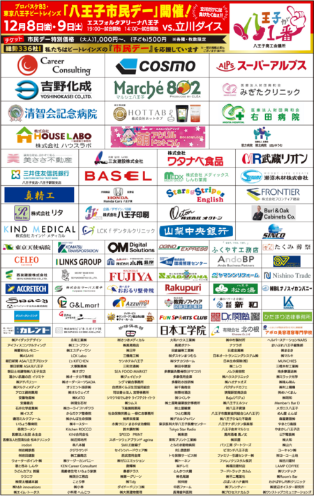 「バスケで八王子を盛り上げる!」「子どもたちに夢と未来を」という理念にご賛同くださる企業・個人の皆さま、共に八王子市民デーを大いに盛り上げましょう!!