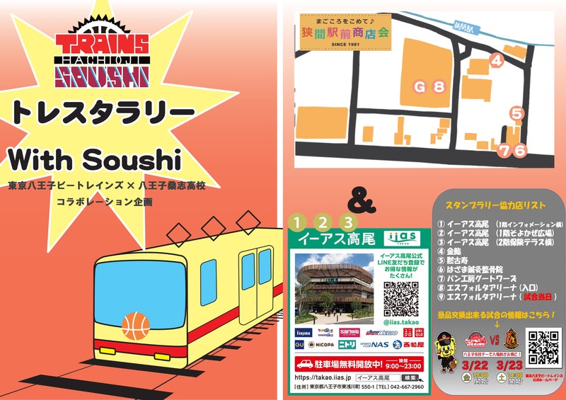下記の日程において「東京八王子ビートレインズ×八王子桑志高校コラボレーションスタンプラリー」を開催いたします。