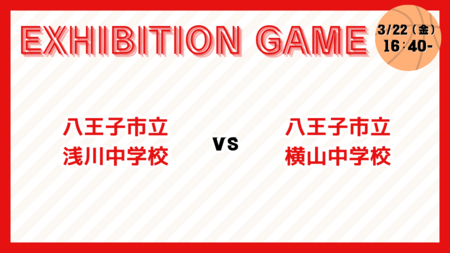 3月22日のエキシビションは八王子市立浅川中学校vs八王子市立横山中学校の試合を行います!